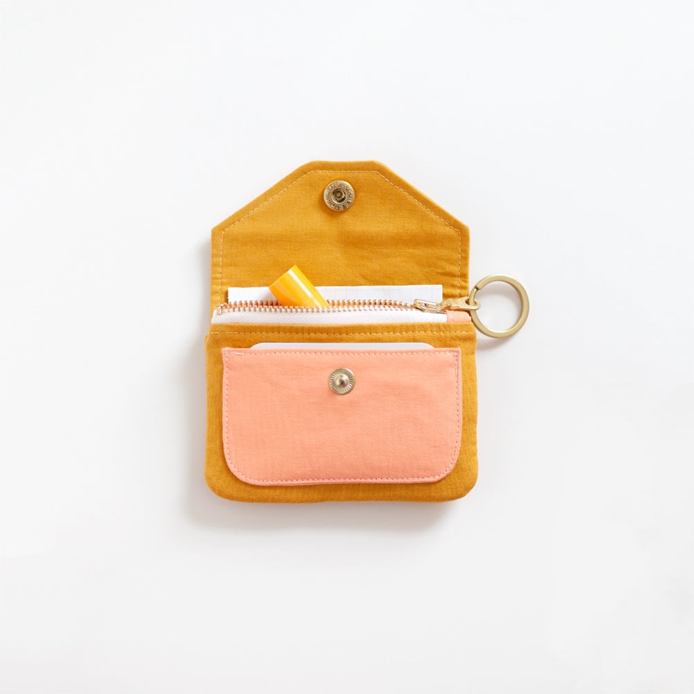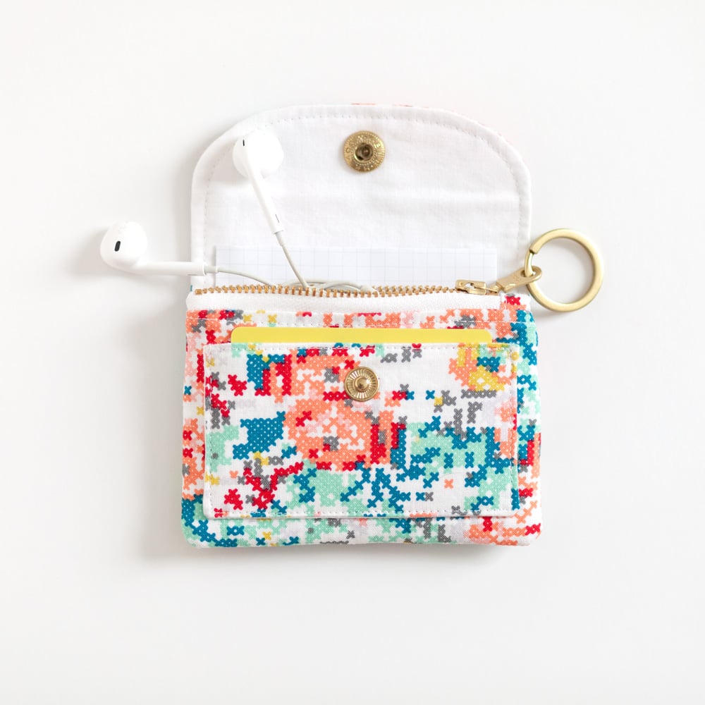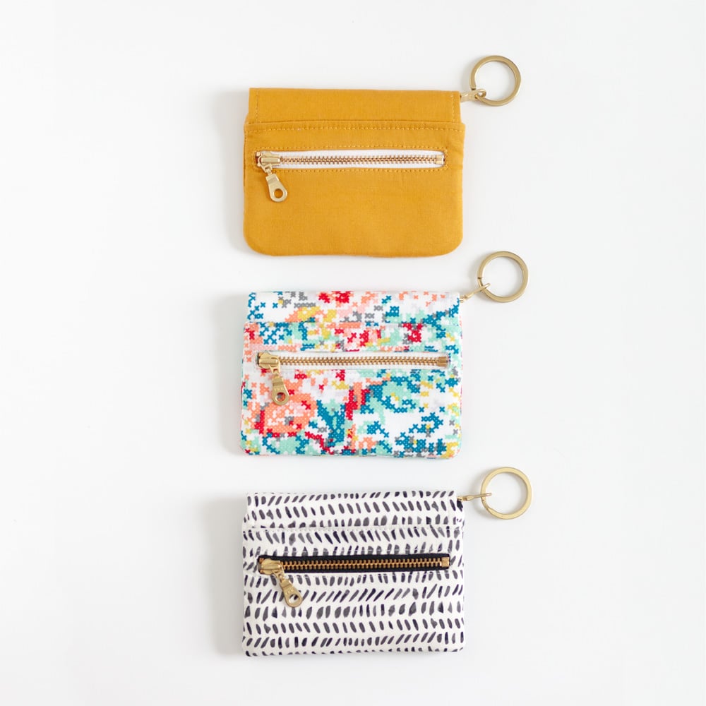 The Samstag Wallet is a little wallet with tons of personality! It's great for when you want to travel light and keep things simple. This wallet contains 4 separate pockets to help keep you organized: a front card pocket, a main zipper pocket, a hidden pocket, and a welt zipper pocket. Style options include 2 wallet flap styles, 2 front pocket styles, and 2 wallet corner styles. When choosing fabrics to use for your Samstag wallet, you can show off a single favorite print, mix and match prints, or color block using your favorite solid colors.